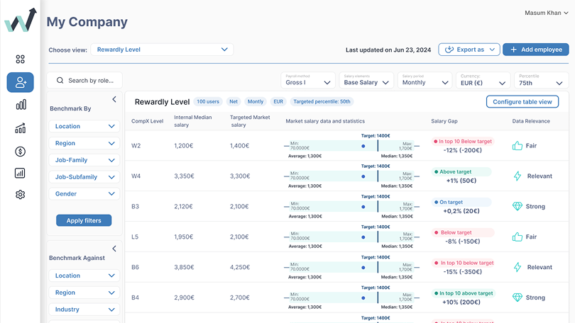 User-friendly reporting: Rewardly makes it easy to download clear, concise reports that are simple to navigate and understand, streamlining data analysis and enabling quick, accurate benchmarking of your compensation strategies.