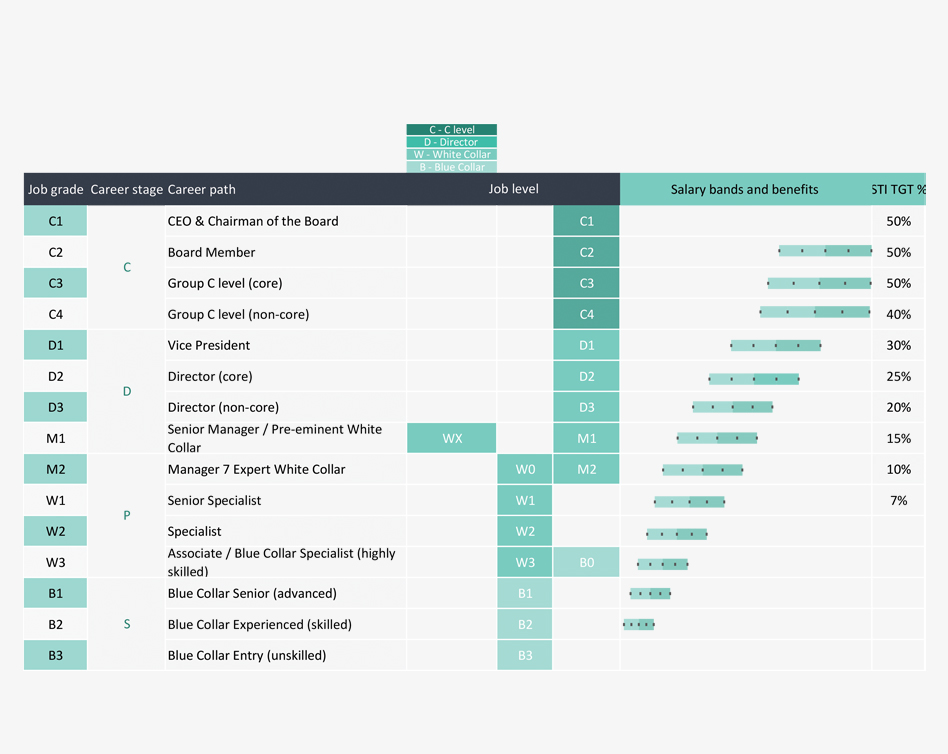 Structured compensation and benefits framework drives business success. It promotes transparency, fairness, and equal pay, defines clear development paths for each role, and aligns individual performance with company objectives. This strategic approach boosts employee satisfaction, fosters talent retention, and contributes to overall business growth.